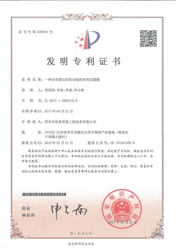 • 一種具有煤塵回收功能的封閉式煤棚-發(fā)明